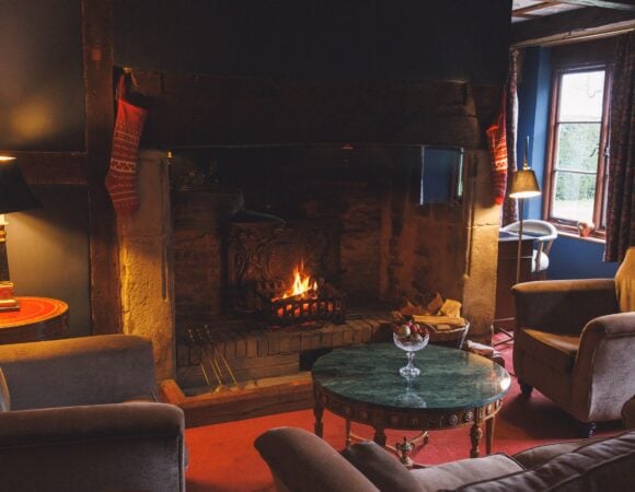 And importantly, Broadfield is dressed to welcome you from the start of December onwards. Our magnificent locally-grown trees grace the long hall and dining room, bedecked with baubles. Our mantels boast greenery and candles, and from our beams dangle stars and, of course, more glittering baubles. There are even stockings hung by the fireplace. And our bar too sees a tree and its own glitter ball, ready for those festive frivolities.