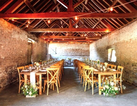 New for 2026 and beyond, our Broadfield barn will be a wonderful space to dine for up to around 90-100, either on long tables or rounds, it’ll be a truly atmospheric place to dine and then dance, with more evening guests able to join the party.