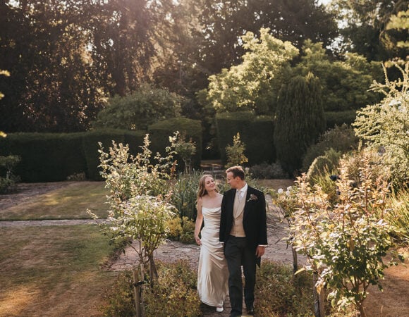 For an indoor wedding, the elegant wood panelled dining room with its huge stone fireplace and views over the rose garden can seat up to 60, and the sun-filled inner hall seats up to 50. For larger numbers, Broadfield’s fold yard with its distinctive hexagonal structure can seat up to 150. Either with just its high, flag-topped roof, or with its walls enclosing your guests for bad weather days, the fold yard is a captivating garden room style space.